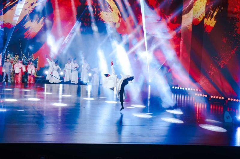 汇报演出环节,《甘露寺》重现刘备、孙尚香的英雄佳人夜,《热血芳华》讲述泸州籍烈士刘国鋕的信仰绝唱。古典国风变脸舞蹈《风华鉴》中,25位青年女舞者在清冷月白的水墨舞台上以创意变脸的形式呈现诗韵流淌,完成的是东方哲学“静与变、表与里”的文化书写。川剧武戏新编《白蛇情·破禅关》以跨越时空的形态,让穆桂英、吕布、至尊宝、武松、关羽等英雄跨时代集结。
