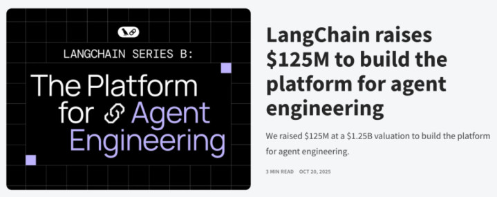 智东西10月22日消息,开源AI Agent框架初创公司LangChain于本周一宣布完成1.25亿美元(约合人民币8.9亿元)新一轮融资,投后估值达到12.5亿美元(约合人民币89亿元),较2023年A轮阶段的2亿美元估值(约合人民币14亿元)增长超过6倍。
