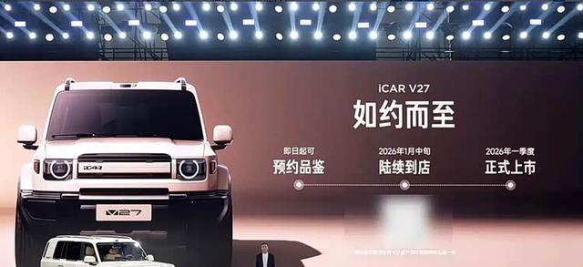 iCAR V27将于2026年一季度正式上市(大概率3月份),新车定位是中大型SUV,车辆的长度为5055mm(含外挂式备胎),宽度是1976m,高度是1855mm,轴距是2910mm,采用5座布局。新车采用了承载式车身布局,主打轻越野与城市SUV,新车主要竞品或是方程豹钛7,预计起售价不超18万。
